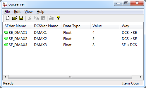 為了實現OPC服務器端和客戶端的數據通訊,需要預先配置I/O點對照表,對照表一般包含數據點的如下信息:名稱(服務器端和客戶端)、數據類型、轉換系數、傳輸方向(輸入、輸出、雙向傳輸)、分辨率(數據變化多少才進行傳輸)等。