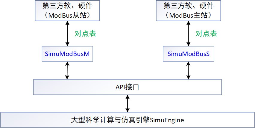 第三方軟、硬件通過ModBus通訊接口與SimuEngine進(jìn)行數(shù)據(jù)通訊的方式如下圖所示: